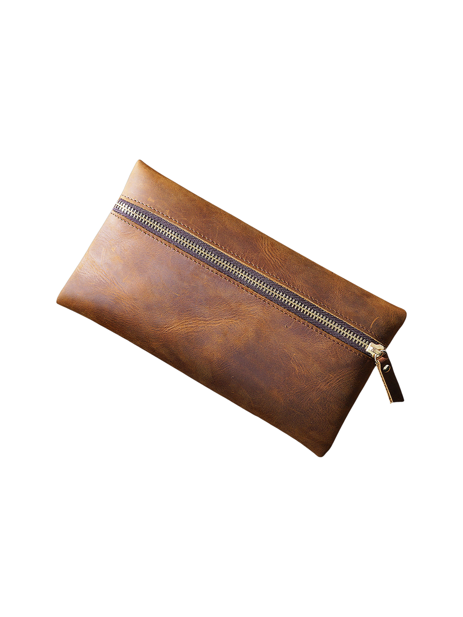 - Matériau de qualité : Fabriquée en cuir de vache, cette pochette offre une finition lisse et un zip métallique de qualité.