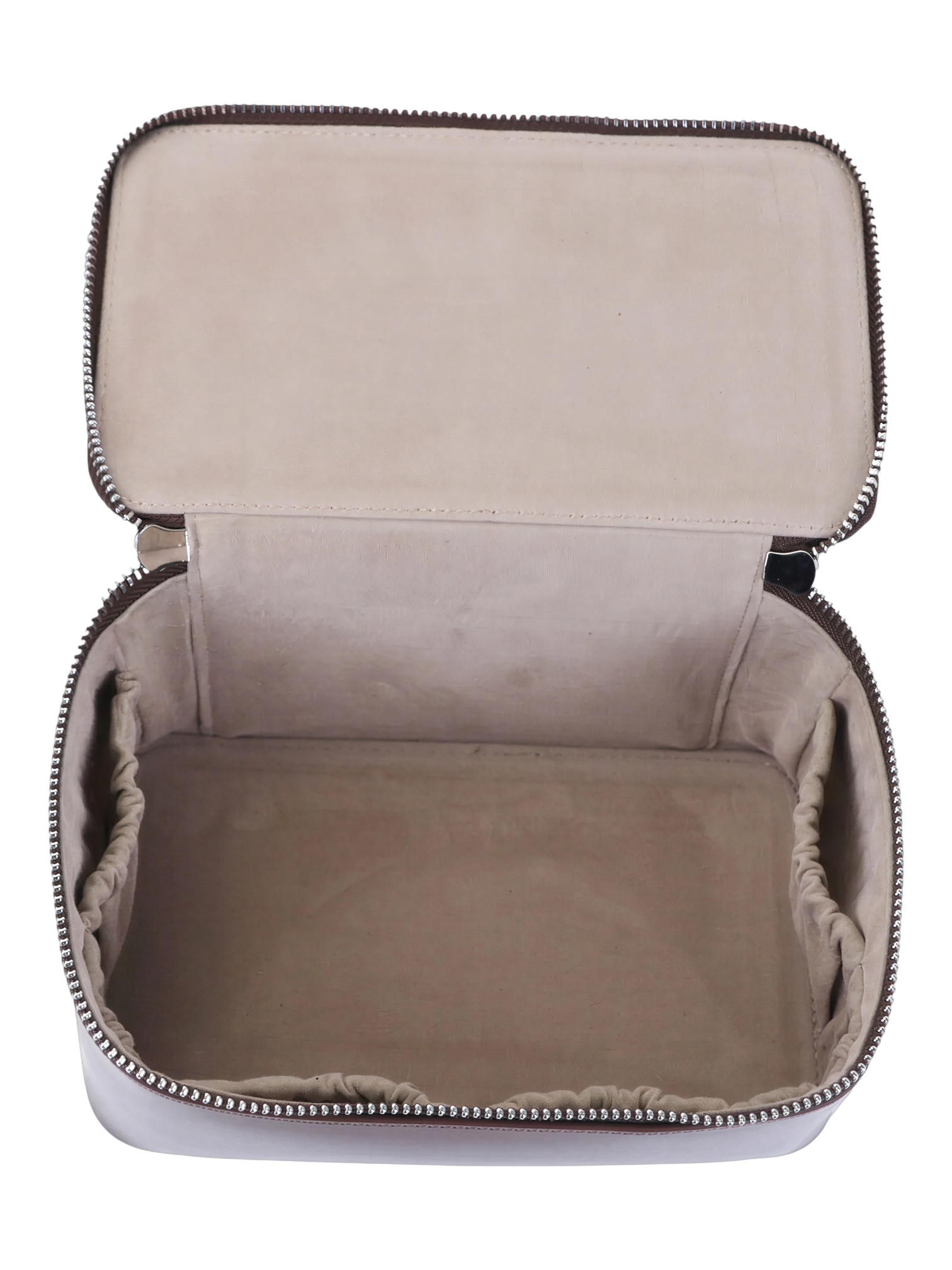 Chaque détail de cette trousse est conçu pour la durabilité et l’usage. Les coutures apparentes soulignent une fabrication soignée, tandis que la fermeture éclair métallique à double tirette assure une ouverture large et un accès facile à vos affaires. L’intérieur est doublé d’une flanelle douce, offrant une protection délicate à vos contenus, et des poches élastiques latérales maintiennent les flacons et petits objets bien en place.