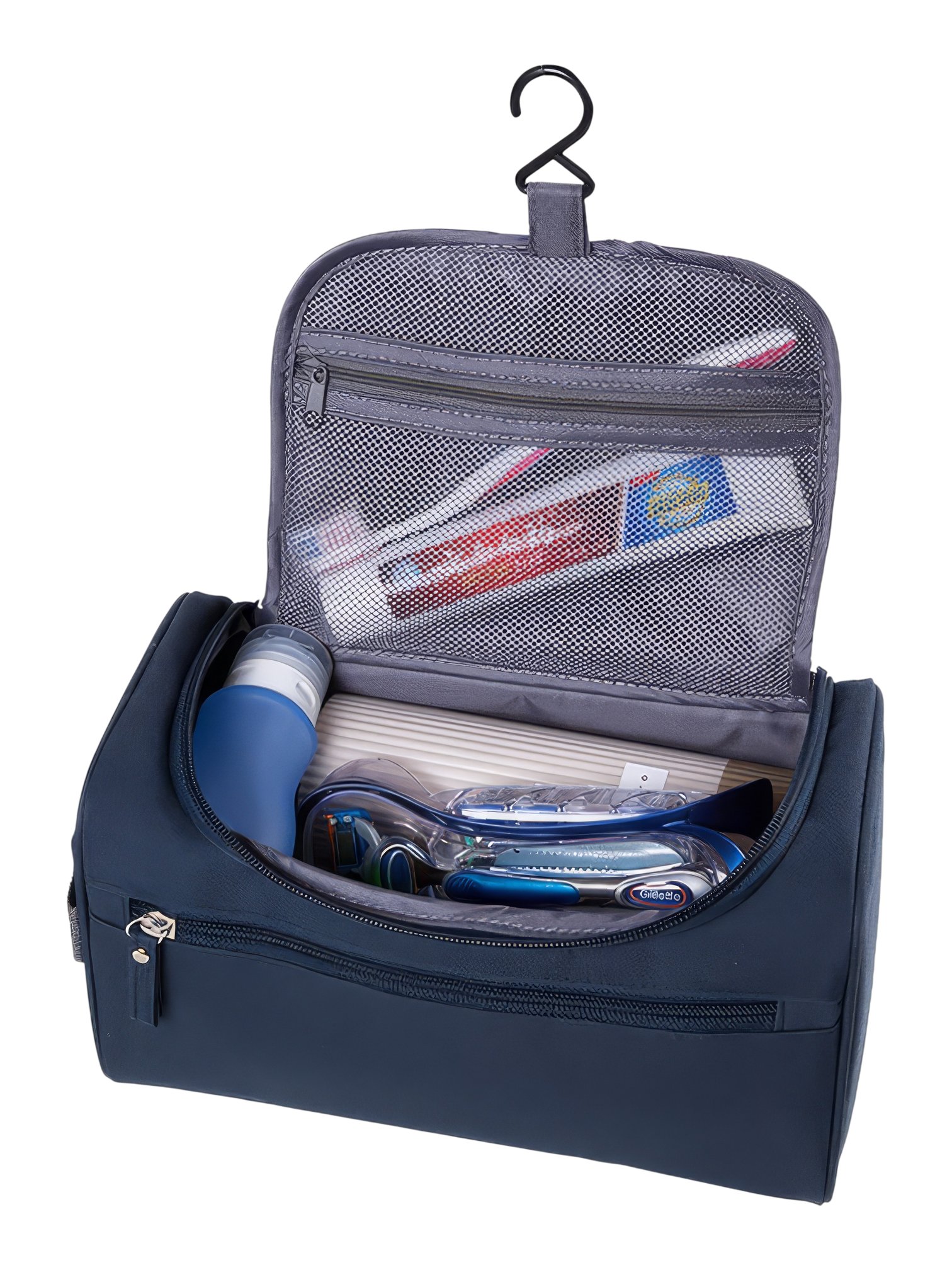 L’intérieur de la trousse révèle une organisation astucieuse. Le compartiment principal zippé est suffisamment spacieux pour accueillir des articles plus volumineux tels que votre nécessaire de rasage, vos bouteilles de shampoing ou votre déodorant. Des poches latérales zippées supplémentaires et une poche interne en maille permettent de ranger les petits objets comme une brosse à dents, un rasoir ou des câbles, les gardant séparés et facilement accessibles. Certains modèles intègrent même un crochet de suspension pratique, transformant votre trousse en un organiseur mural dans la salle de bain.