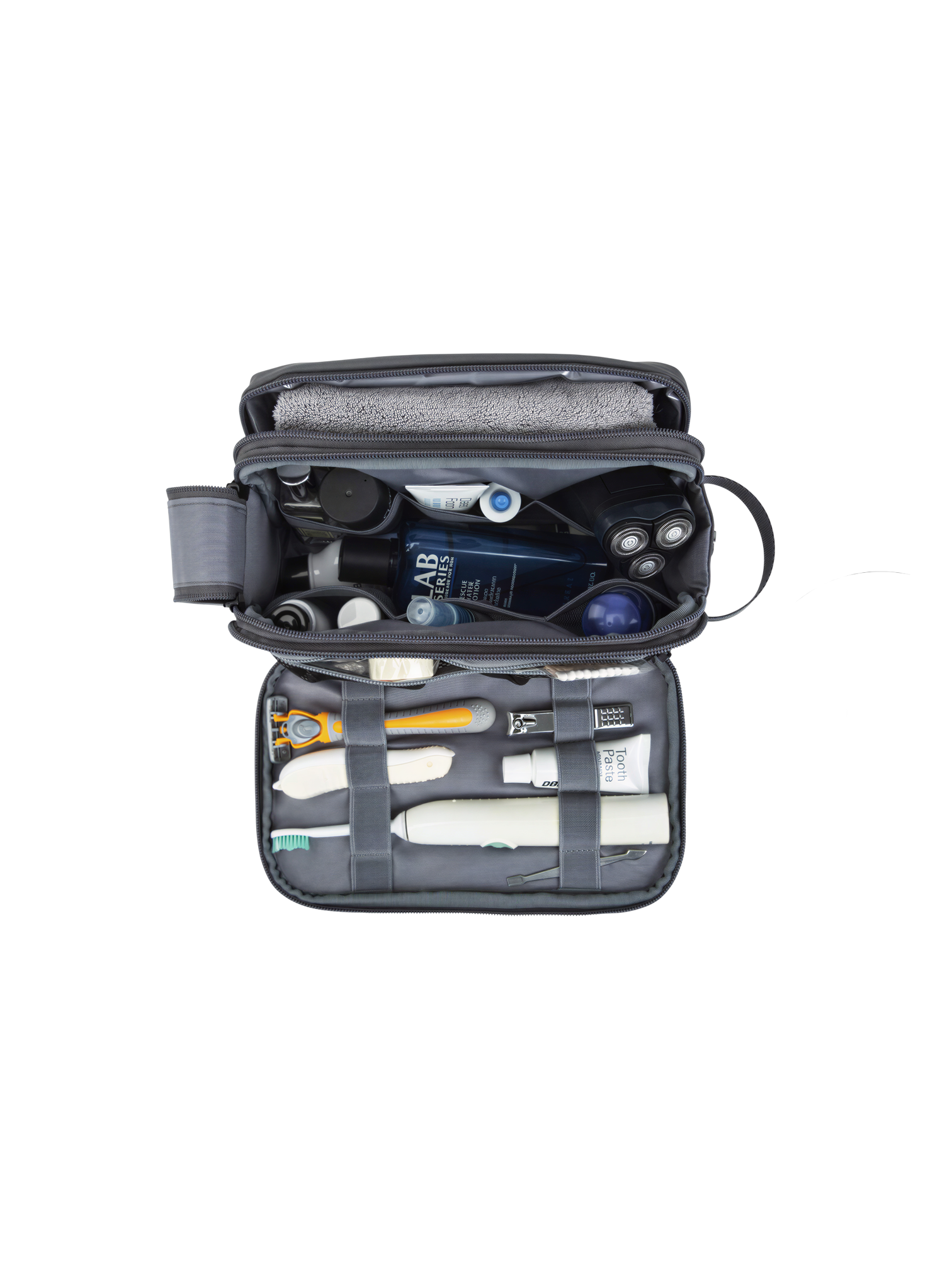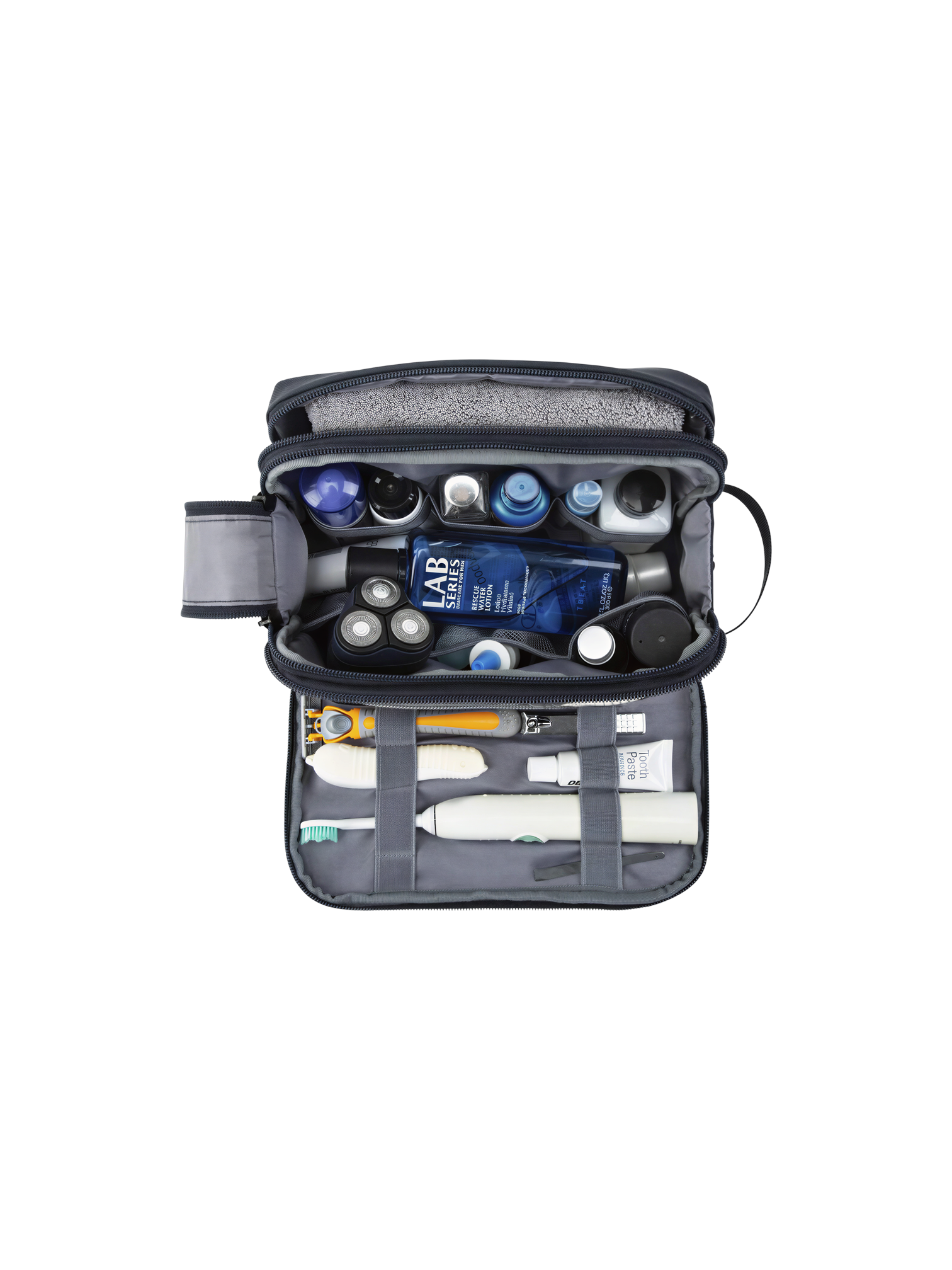 De multiples poches en filet et des sangles élastiques supplémentaires sont là pour vos petits articles : brosses à dents, maquillage, accessoires de rasage. Chaque chose trouve sa place, restant visible et accessible. Une caractéristique particulièrement utile est son compartiment étanche, qui permet de séparer les articles humides des secs, évitant ainsi toute propagation d’humidité à vos autres affaires.